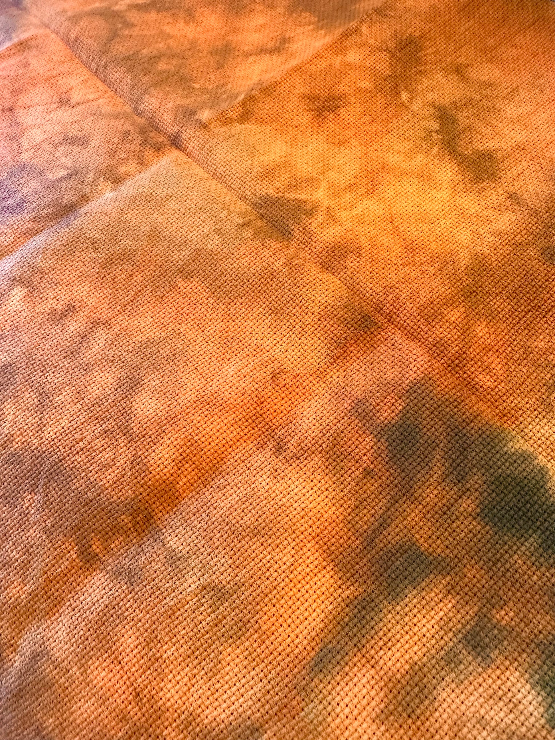 This is a fat 1/8th piece of 16 count Aida fabric. Fabric is various shades of oranges mixed with black. Used specifically for our Witches Hollow and Tonight We Ride patterns. Picture is an example only and may not be the exact piece you get. Monitors are all different, so please understand your color may look different than what is displayed on your screen. Pictures were taken of actual fabric, and colors are accurate on our monitor.