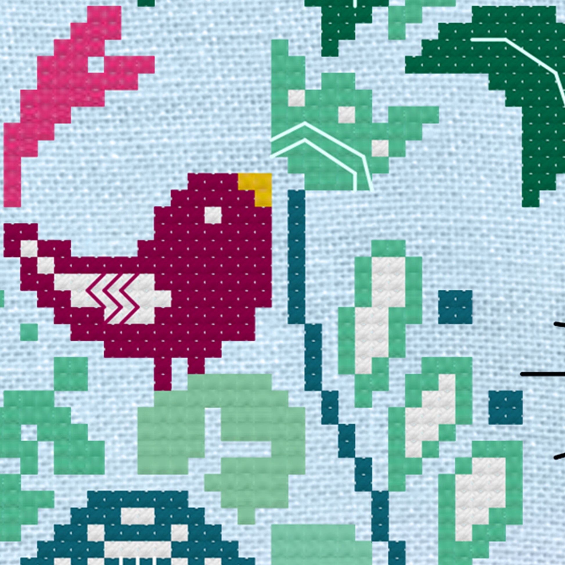-Stitched area is 8.71" x 8.71" when stitched on 28 count over 2 threads.