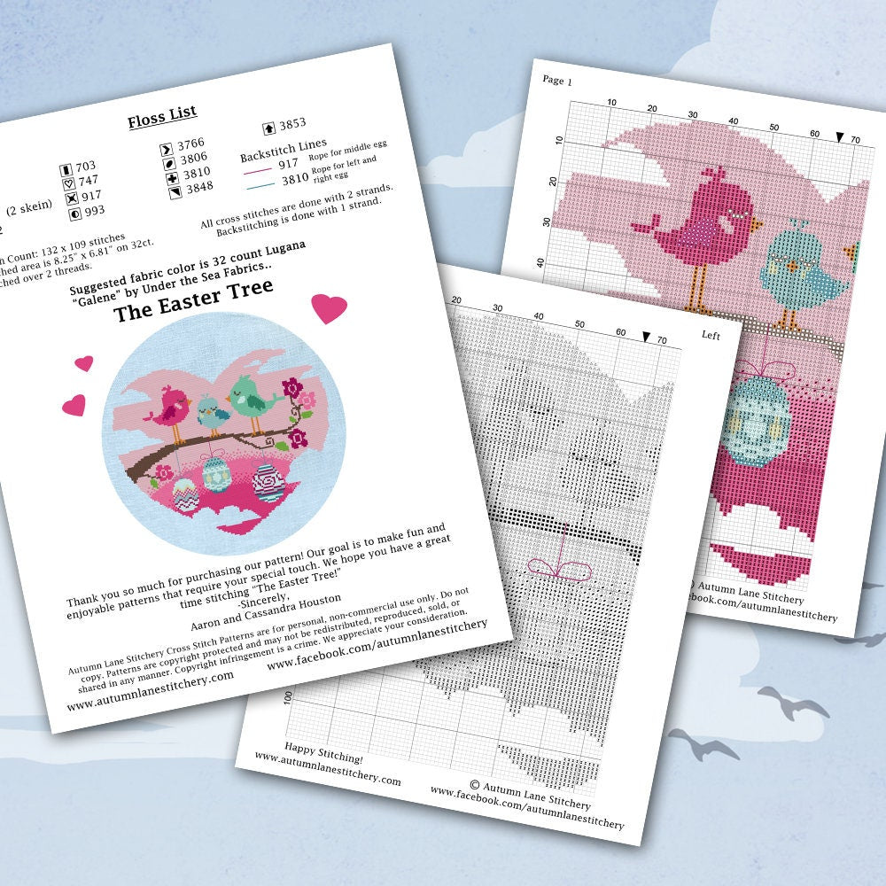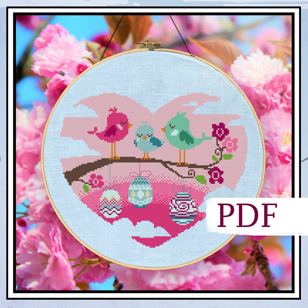 The cute little birds are making sure your eggs are all ready for your Easter egg hunting! With lots of fun, bright colors, this pattern is sure to be a great companion to all your easter decorations for years to come! This is an easy pattern for beginners to follow with mostly whole cross stitches, and minimal backstitching.