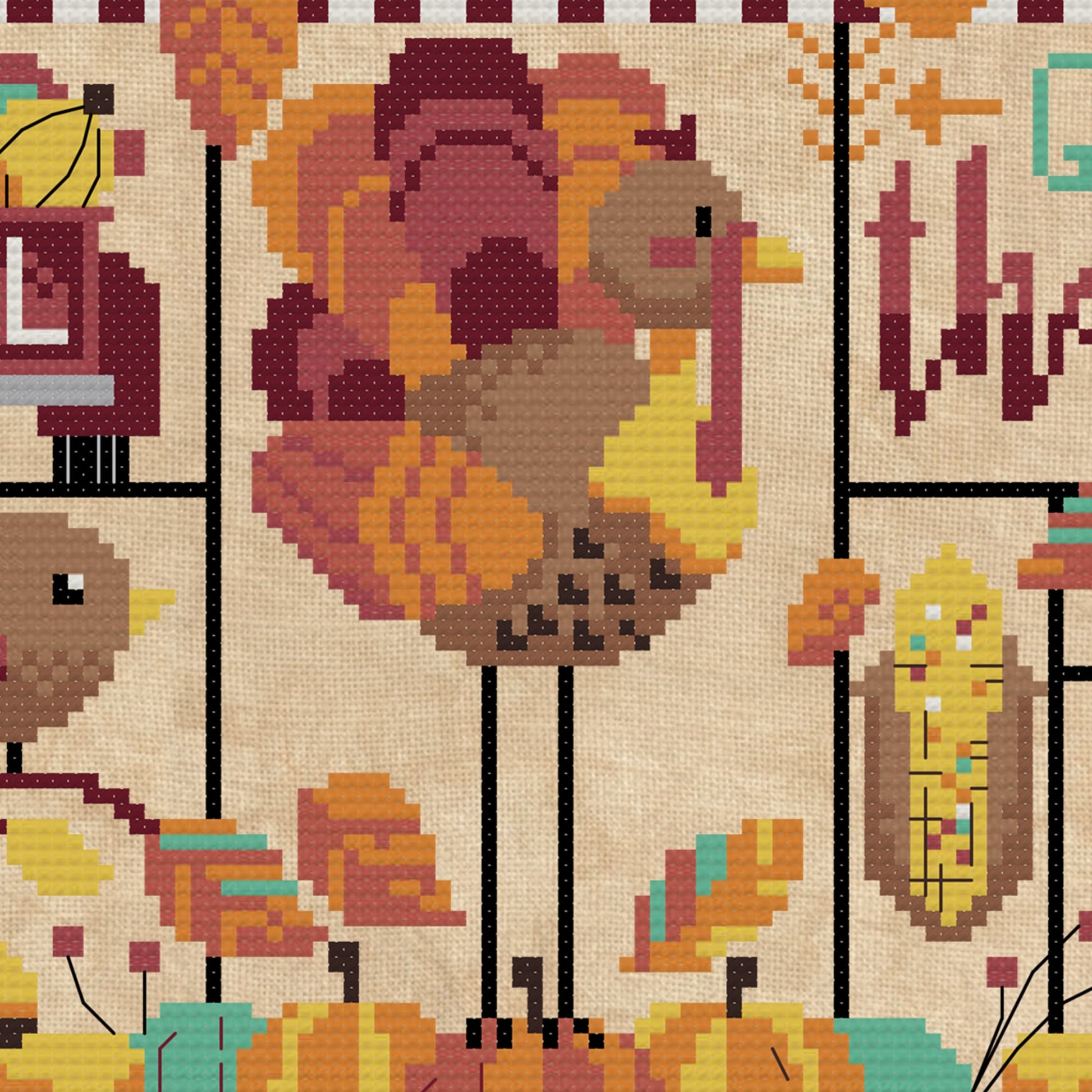 In this Thanksgiving-inspired cross stitch sampler, you get some of the best things this holiday has to offer! A quirky turkey, cornucopia, pumpkins, adorable bird, and more! You are sure to have a ton of fun discovering all the exciting things this pattern has to offer!