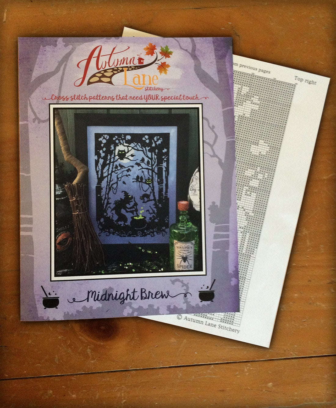 Exclusive Autumn Lane Stitchery Midnight Brew Leaflet for counted cross stitch.