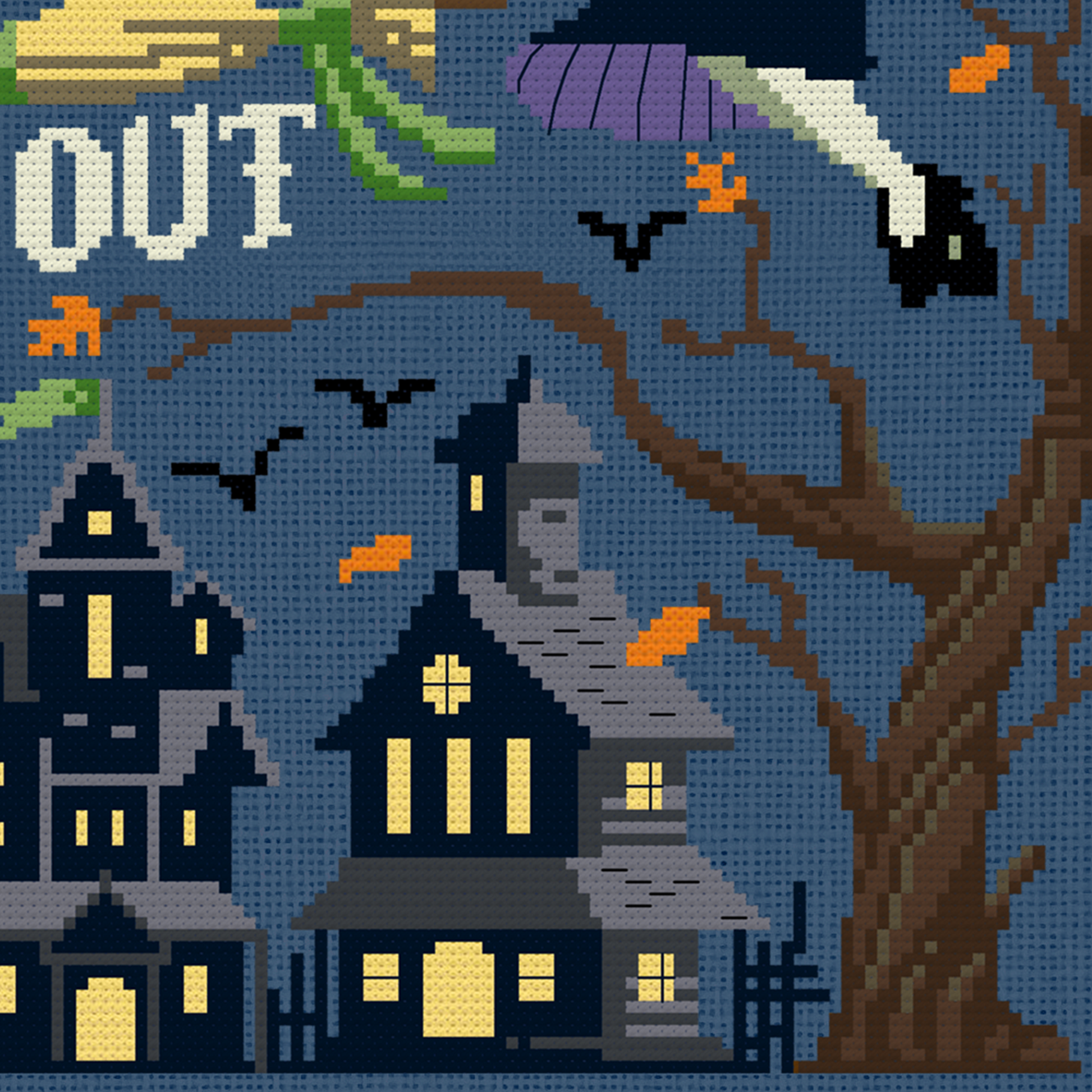 This is the Physical pattern for the Moon's Out Brooms Out cross stitch pattern
