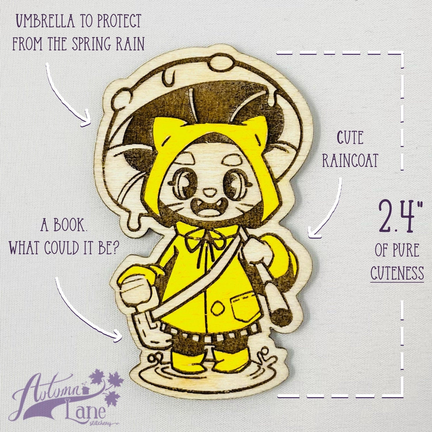 Are you looking for a cute little stitching buddy to be by your side while you stitch all your sweet projects? This cute little cat is on her way with her book and her umbrella, off to find a nice spot to read! I wonder what she is reading at the moment?