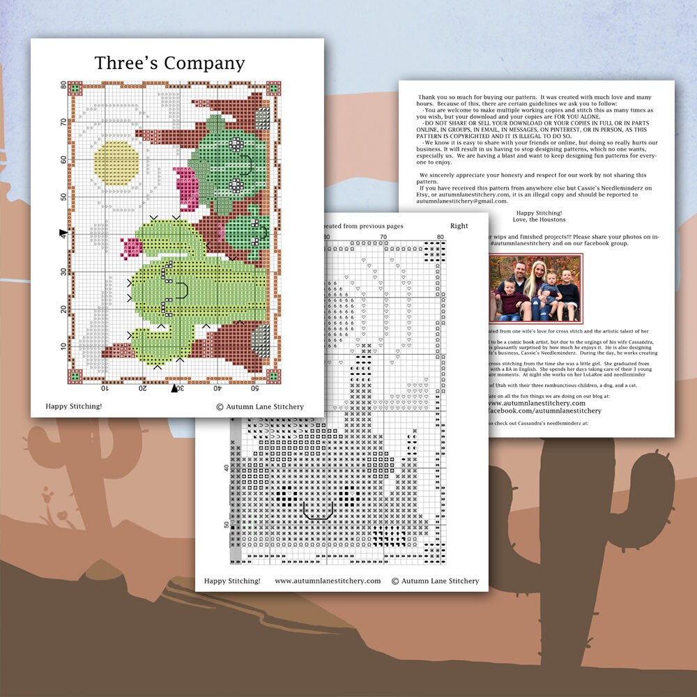 This is an instant download PDF cross stitch pattern so if patience isn't your strong suit, buy this and start stitching this adorable cactus family instantly!