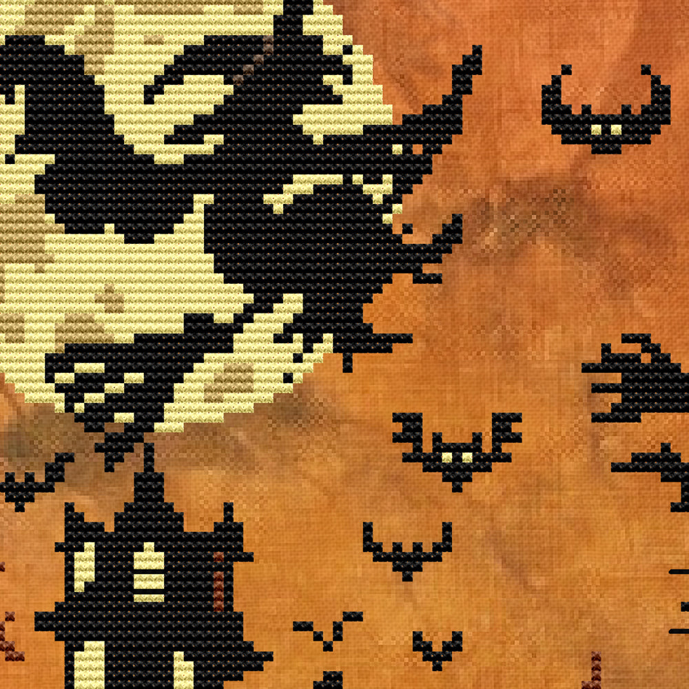 Enjoy stitching this spooky season with this trio of witches flying past the full moon on All Hallows Eve! With only a few colors, we packed in the detail to bring you a truly spooky stitch!